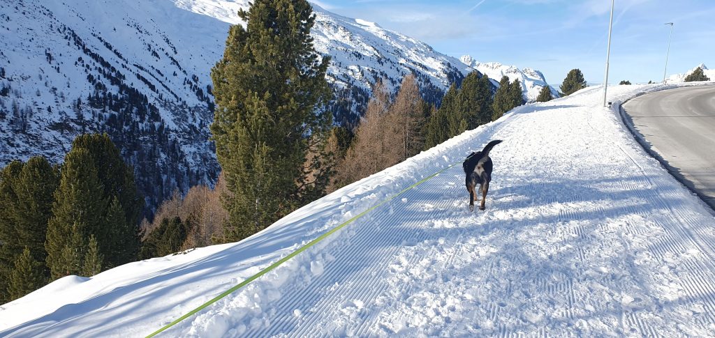 Und Schnee gibt es hier genug. Unser Hund versinkt immer wieder tief in den Schneewehen und erfreut sich tierisch an dem Schnee.